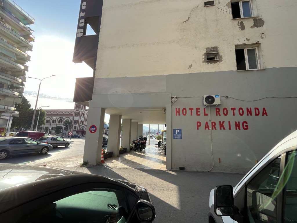 Het hotel in de ochtend Vandaag gaan wij de laatste etappe door Griekenland maken op weg naar Kefalonia. Ruim 400km en ruim 6 uur onderweg, inclusief overtocht. Vrij snel kunnen wij Thessaloniki achter ons laten. En gaan wij richting zuidwesten. Over de Egnatia Odes (Via Egnatia), deze snelweg A2 is een belangrijke Oost-West verbinding. De snelweg ligt er nu ongeveer 10 jaar en kent vele tunnels en viaducten. Ik ken ook nog de oude situatie een 2-baansweg door de bergen. Dan is dit wel prettiger en vooral sneller.