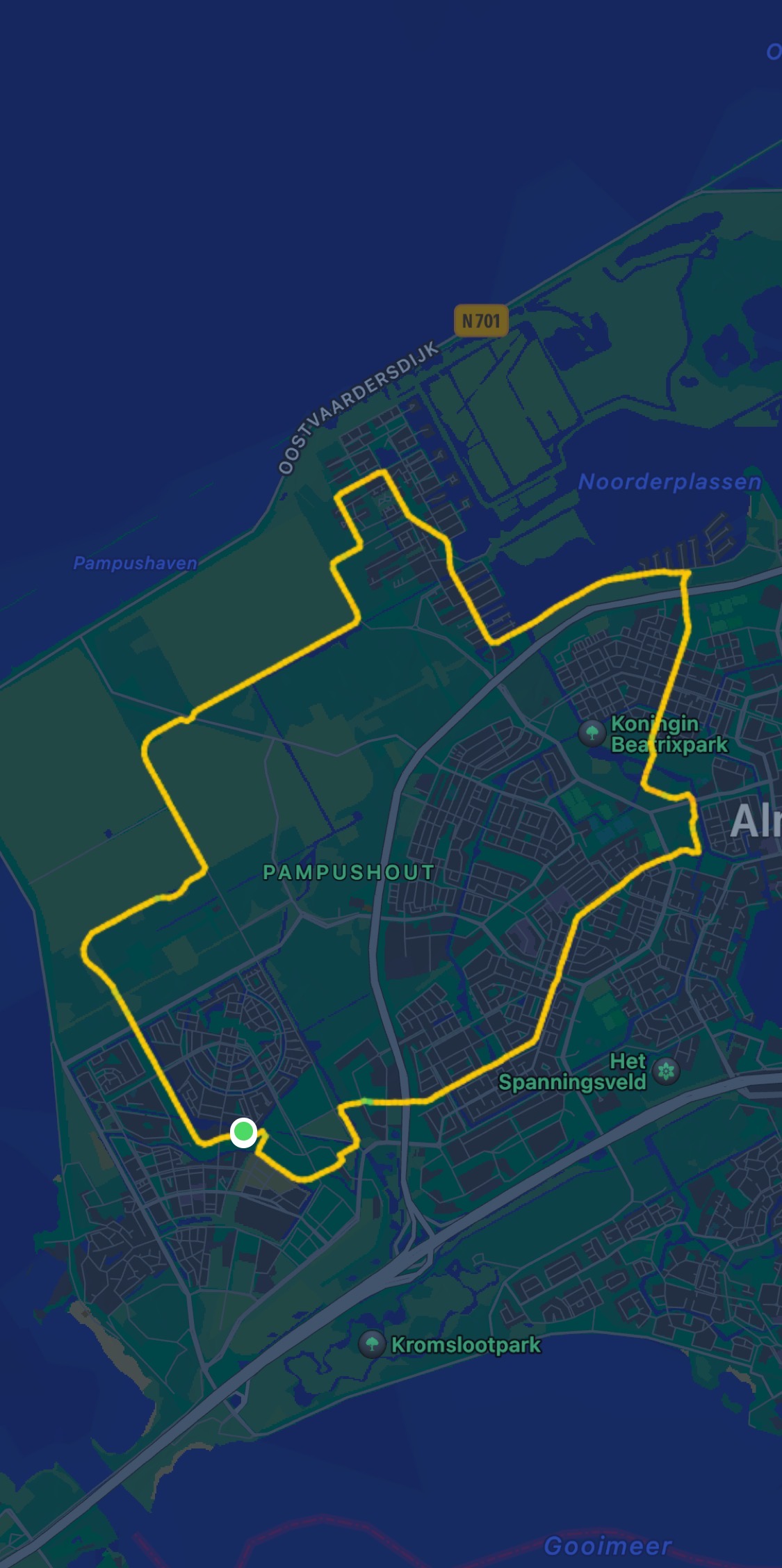Het is al vroeg vandaag op zo’n mooie verlate lentedag. Iedereen kijkt daar naar uit, dus ik ook. Volop zon, kwetterende vogels in de lucht, een aangename temperatuur en de geur van pas gemaaid gras in je neus. Ik stap er lustig op los dwars door het Cascadepark, natuurgebied Pampushout, de Noorderplassen, de Kruidenwijk, het Beatrixpark, Muziek- en Literatuurwijk om weer te eindigen in Poort.