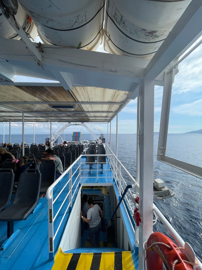 De veerpont in PountaElafonissos vooruit